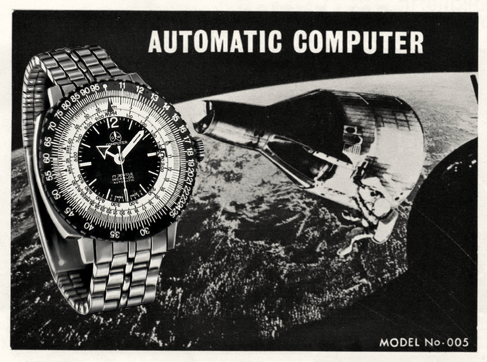 Vous n'avez peut-être jamais utilisé de règle à calcul. Depuis l'avènement de la calculatrice électronique, rares sont ceux qui l'ont fait. Cependant, avant les années 70, les règles à calcul étaient utilisées pour les opérations arithmétiques courantes, telles que le calcul de ratios, de pourcentages, les conversions d'unités, les multiplications et les divisions. Dès le milieu du siècle, des montres-bracelets équipées de règles à calcul miniatures étaient utilisées par les scientifiques, les ingénieurs et les pilotes pour calculer des paramètres tels que la consommation de carburant, la vitesse anémométrique, la vitesse sol et le taux de montée ou de descente. Tout au long des années 60, les montres à règle à calcul étaient omniprésentes dans le secteur florissant de l'ingénierie aérospatiale, de la NASA à General Electric. Les « ordinateurs Selectron » d'Ollech & Wajs comptaient parmi les montres à règle à calcul les plus populaires de cette époque. À l'époque, le mot « ordinateur » désignait une personne effectuant des calculs, plutôt qu'une machine programmable capable de traiter des données numériques.