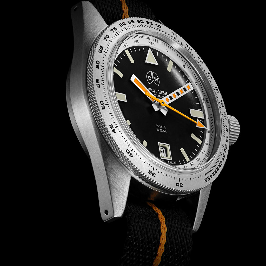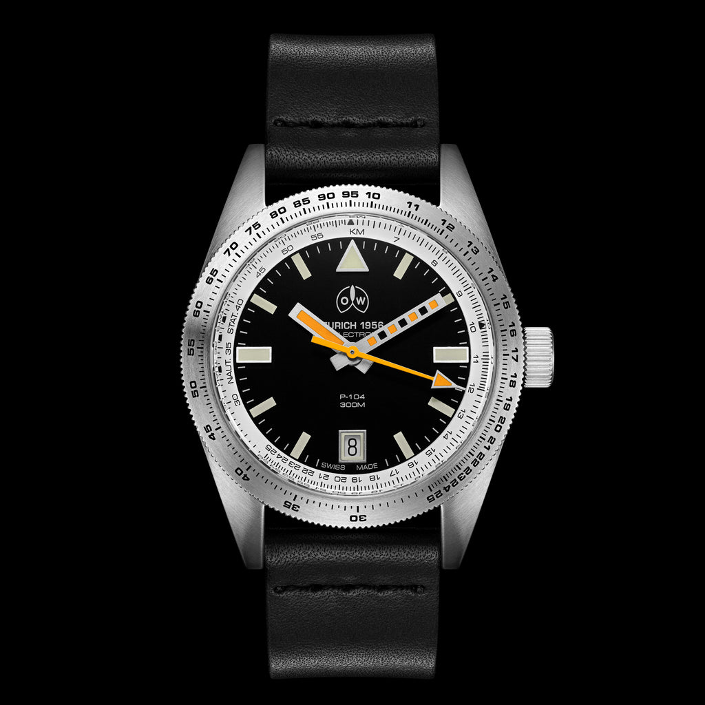 L'OW P-104 Selectron partage de nombreuses caractéristiques fondamentales avec ses prédécesseurs historiques. Sa lunette bidirectionnelle à échelle logarithmique permet d'effectuer une multitude de calculs d'un seul tour. Plus rapide qu'une montre connectée, elle ne nécessite pas de pile et peut être utilisée sous l'eau, jusqu'à 300 m si nécessaire (une véritable astuce !).