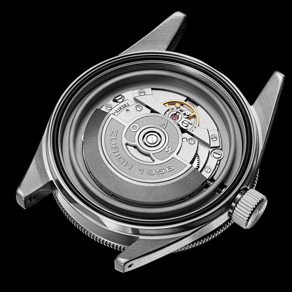 L'OW P-104 Selectron abrite l'inimitable calibre Soprod Newton Precision P092, fabriqué sur mesure par OW. Ce calibre automatique exceptionnel est soumis à des tests indépendants de fiabilité et de durabilité au Laboratoire Dubois de Chaux-de-Fonds, de renommée internationale. Il est modifié selon les spécifications d'OW et ajusté dans cinq positions, le mouvement a été fini conformément à notre esthétique robuste, et « OW Zurich 1956 » est gravé dans la base nickelée, sur laquelle se trouve un rotor personnalisé co-conçu aux formes de la marque OW.