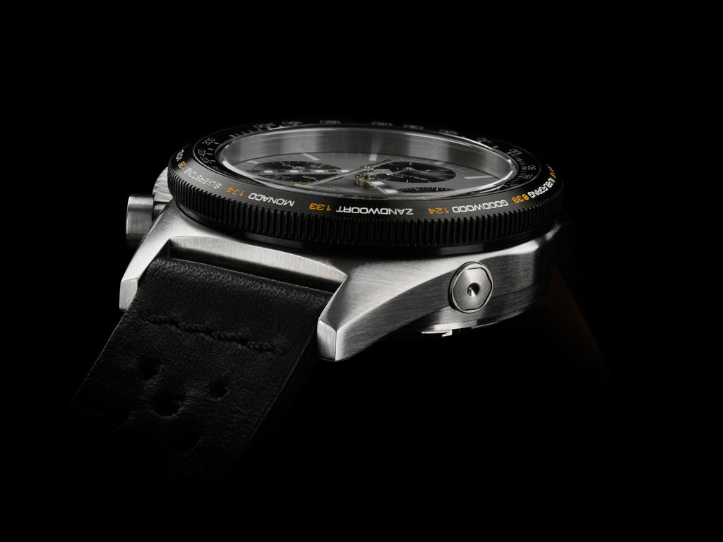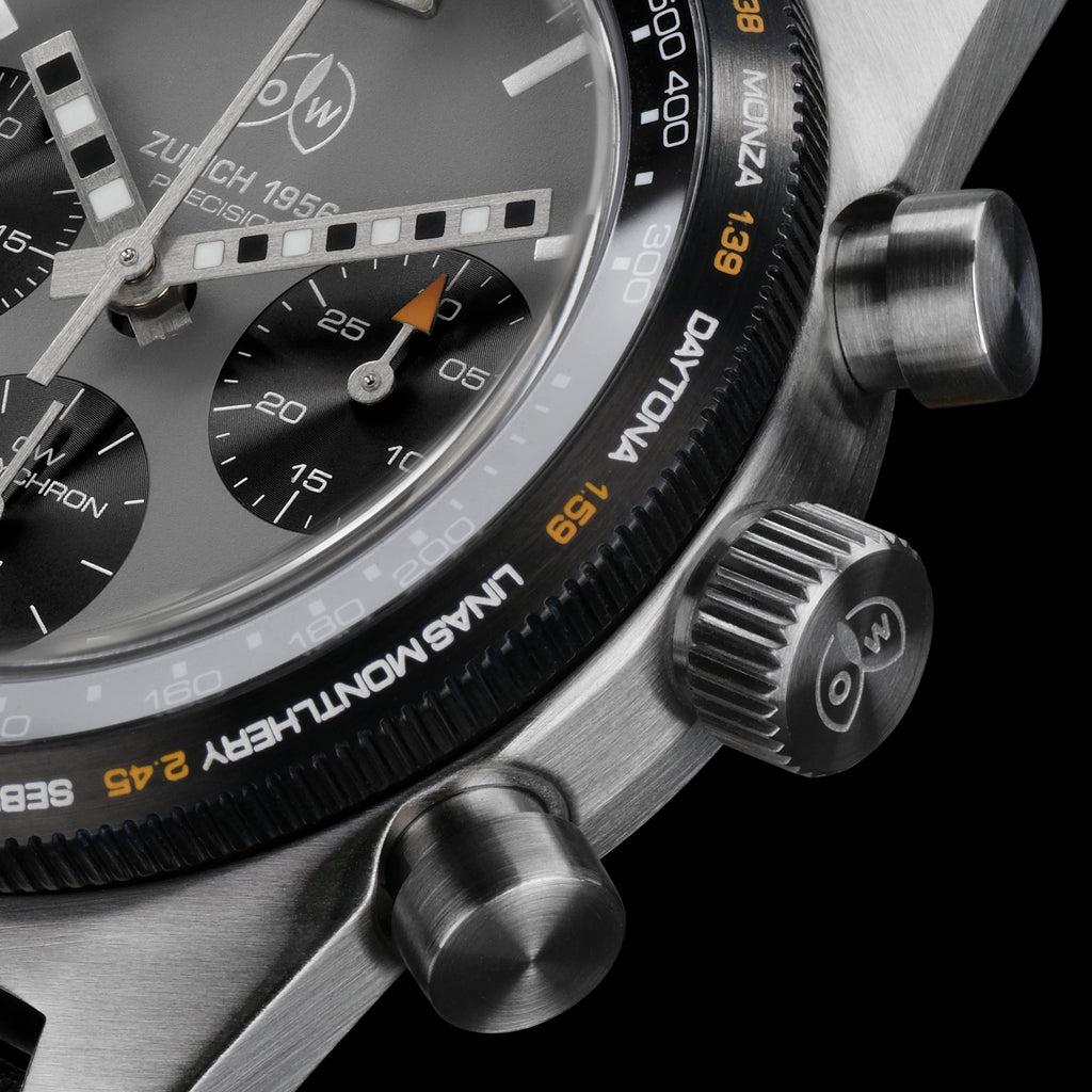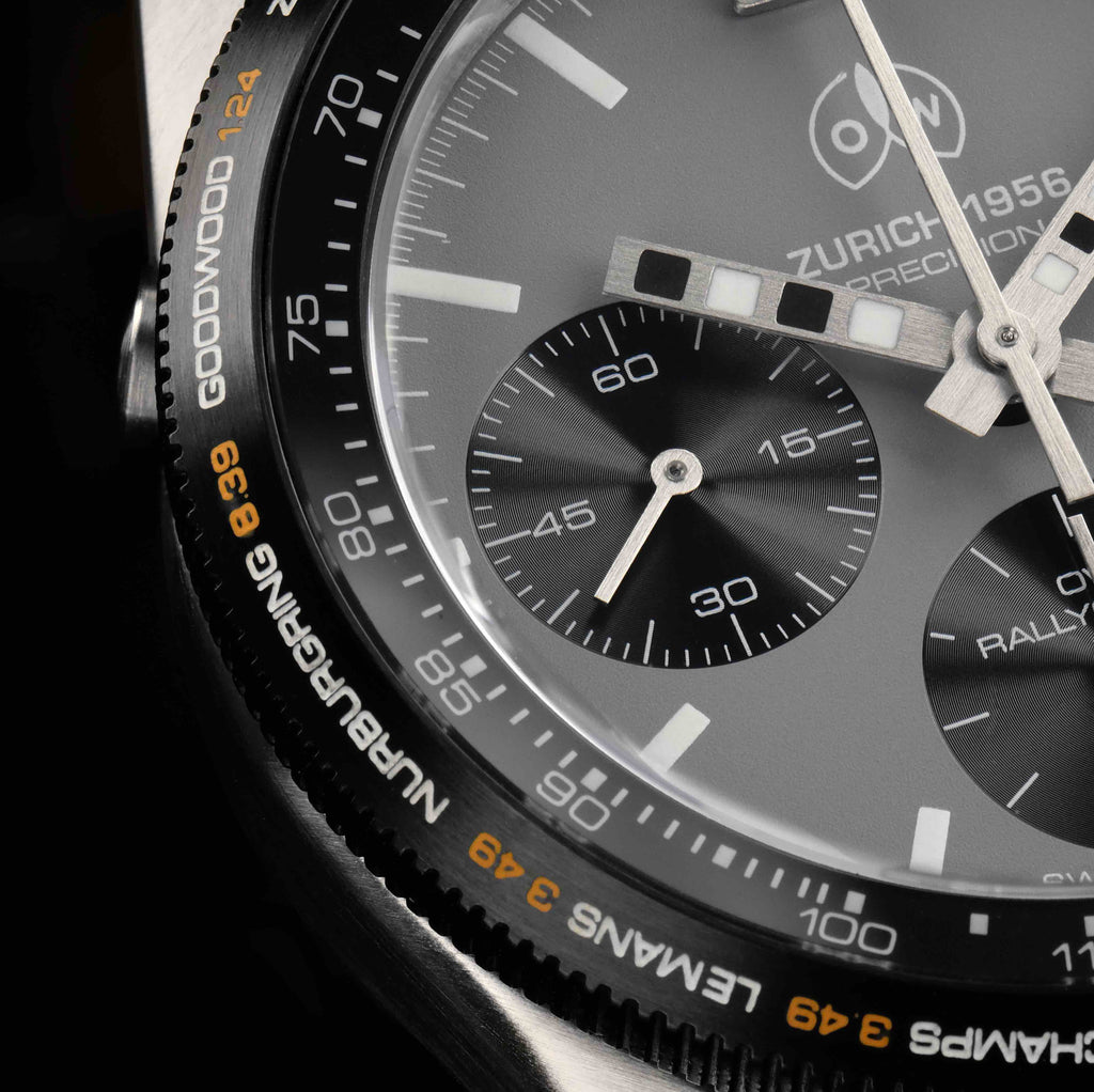 L'OW Rallychron est une lettre d'amour à l'âge d'or de la course automobile et aux circuits légendaires qui ont témoigné des moments les plus mémorables de l'histoire du sport. L’une des caractéristiques déterminantes de cette époque était la grande diversité des circuits de course et les défis qu’ils présentaient. Des pistes rapides et fluides comme Monza et Spa-Francorchamps aux rues étroites et sinueuses de Monaco, chaque circuit exigeait des compétences différentes de la part des pilotes et des équipes. La lunette du Rallychron présente des temps de tour parfaits historiques hypothétiques pour 11 des circuits de course les plus emblématiques du monde. Il présente également les caractéristiques des chronographes de compétition et des chronomètres de rallye classiques Ollech & Wajs des années 60 et 70.